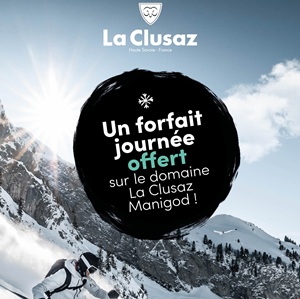 ![]() | 1 forfait journée offert sur La Clusaz à partir du forfait 6 jours Portes du Mont-Blanc. 1 journée La Clusaz utilisable durant la durée de validité du forfait. A récupérer à l’un des points de vente de la Clusaz munis de votre confirmation de commande EXCLU WEB |
